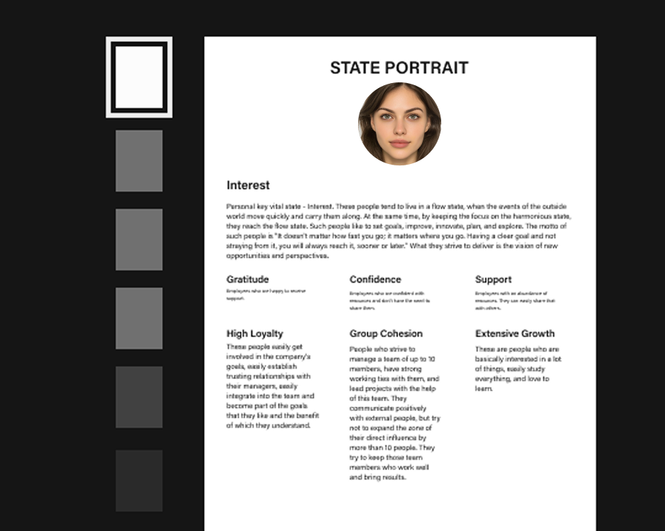 Для тех, кто хочет сначала понять себя. Получите персональный портрет — с ясным описанием особенностей, сильных сторон и зон, на которые стоит обратить больше внимания.